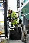 Foran det velsmurte maskineriet av asfaltarbeidere, kjører Katrine Eikeland asfaltbilen og fyller på med ny masse. Hun er ansatt i selskapet Nytveit AS, men kjører fast for asfaltlaget til Tertnes Entreprenør, og er en av gjengen. Hun har til og med på seg Tertnes Entreprenør-genser. Det merkes at teamet nå er i høysesong.