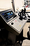 – Her kan du kjøre hele maskinen fra setet i motsetning til å ha den vanlige pulten. Med seks kameraer på maskinen får du i tillegg skikkelig fugleperspektiv rundt maskinen, forklarer Strand.