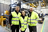 OMVISNING: Jernberg og Berg Hansen sammen med verksmester Petter Sakshaug (til høyre) i verkstedhallen i Drøbak. Sakshaug fikk sagt til Volvo-toppen at de var super-fornøyd med fasilitetene i det nye anlegget.Anlegg&Transport