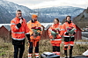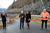 MESTA: Avdelingsdirektør Svenn Egil Finden (til v.) i Statens vegvesen ga blomster til anleggsleder Jonas Pedersen i Mesta (f.v.), byggeleder Andrea Holsen Horstad og geotekniker Jan Helge Aalbu (begge Statens vegvesen).Ole Kristian Åset, Statens vegvesen