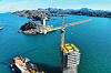 Én av Liebherr EC-H-kranene står plassert direkte i fjorden på et spesialdesignet stålrammeverk som delvis er utkraget over vannet og forankret til havbunnen.