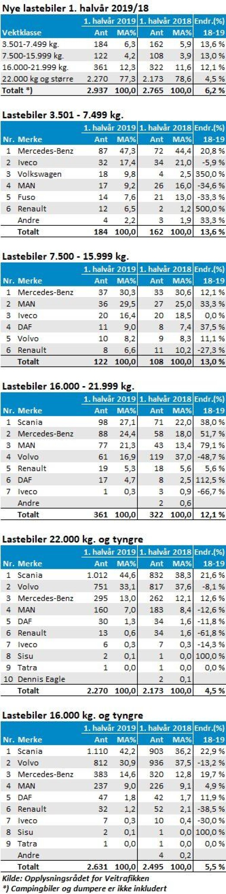 Dette er et lite segment i den store sammenhengen, med totalt 122 registrerte kjøretøy første halvår. (22 tonn og tyngre hadde 2270 stk. samme periode)