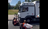 Her krasjer vogntoget nesten med UP UP-bilen må nesten hive seg i grøfta for å ikke kollidere med vogntoget i feil kjørefelt. Se video!