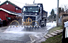 Vårvasken Etter at feiebilene har gjort sin jobb, kommer vaskebilen og sørger for at siste rest av grus og støv forsvinner fra veiene.