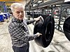 VARMVULK: Erik Bodahl-Johansen viser hvordan et dekk som er klart til baking ser ut med 60-70 runder gummi spunnet rundt og på sidene av dekket.