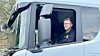 PENSJONERT POLITIMANN: Co-piloten Øyvind Holm kjørte de første kilometerne før undertegnede tok over. Han har en historie eller to på lur etter et liv som politimann og lastebilsjåfør.Fredrik Saugstad
