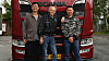 Svempa Bergendahl flankert av Liu Weitao (til høyre) og medsjåfør Guo Longxian. Under studieturen til Europa besøkte de Svempa – et stort lastebilikon i Kina.