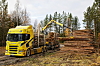 VERDENS FØRSTE: Elektrisk tømmerbil i drift i de svenske skoger.