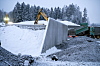 På de høye elementene fylles det over foten som stikker fremover fylles det over foten før det asfalteres på toppen for å låse.
