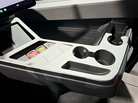 SIDEKONSOLL: Det er ikke noe tradisjonelt over hytta og dette er oppbevaringsplassen en sjåfør har til rådighet.Foto: Torbjrn Eriksen