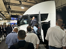 LUFTETUR: To runder i passasjersetet er alt vi fikk, men det gav i det minste en mulighet til å få et lite inntrykk av Tesla Semi.Foto: Torbjørn Eriksen