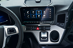 KOMMER: Den nye infotainment skjermen med en ny knapperekke i nedkant og flere funksjoner kommer i 2025.Daimler Truck Global Communicati