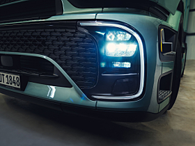 LED: Markeringslyset går som en kontur rundt hovedlykten. i fremtiden kommer muligens også en stripe og binder de to lyktene sammen ble vi fortalt.Daimler Truck Global Communicati