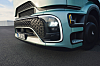 førerkomforten. Det er derfor store lakkerte flater, samt en stor Mercedes-Benz-logo som også fungerer som et håndtak for å vaske og skrape frontruten. Videre