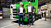 GASS PÅ IAA: Foran en Scania R460 pratet Frode Netland (administrerende direktør) og Steinar Westli (salgsdirektør lastebil) om lastebilkundens dilemma om hva de skal velge.