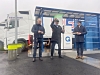 Kjell Stokbakken, direktør for varer & forsyning i Rema 1000 foretok åpningen sammen med transportdirektør i Rema Distribusjon Anders Hustoft (til venstre) og Jogeir Munkeby i Gasum.
