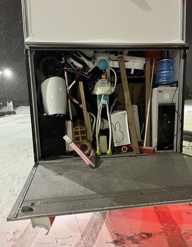 Begge bilene måtte laste ned til lovlig vekt før de kunne fortsette ferden, tør vi gjette at eier av godset ikke var helt fornøyd med omlastingen av godset i snøværet på Jessheim.