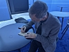 SKISSE: Her skisser designer Kai Sieber en illustrasjon som vi trodde vi kunne vise av den nye bilen, men det var helt til noen "strenge" pr-damer fikk snusen i skissen. Da ble den øyeblikkelig sensurert.Foto: Torbjørn Eriksen
