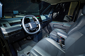 Dashbordet er enkelt og rent med en stor skjerm uten knapper og spaker. Vi antar at dette vil endres vesentlig før produksjonsmodellen etter planen lanseres i 2026.