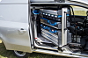 Vi kjørte en versjon med sesam-døren, som gjør det mulig å åpne både førerdøren og skyvedøren til en stor åpning uten en B-stolpe. For mange typer bruk kan dette være en fordel, men når det gjelder støy betyr det at bilen må utstyres med en gitterskillevegg som ikke stanser hjulstøy-resonansen som oppstår i varerommet. I tillegg må hele varerommet varmes opp på vinteren, noe som vil øke energiforbruket. På gode motorveier var ikke dette til noen spesiell sjenanse, men når vi kom ut på landeveier med grov asfalt ble lyden ganske fremtredende. Denne resonansen tror vi stammer fra den noe stive bakfjæringen som gjør at bilen kjennes litt stiv over fartsdumper og hull i bakken, vi må legge til at dette er bortimot det eneste vi fant å kritisere med denne bilen for. Bilen var under kjøringen fylt opp med to personer og en 150 kg kasse i varerommet.