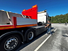 LANG: Den franske journalisten Fabien Calvet viser hvor lang trekkvognen blir som treakslet trekkvogn. Med akselavstand på 4350 mm blir totallengden hele 7950 mm. Dette er en 25 P med de nye Northvolt-batteriene.
