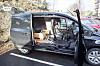 Siden biler utstyrt med den såkalte sesam-døren på passasjersiden, er halve bakveggen gitter. Det betyr noe mer støy i førerhuset, men også en fleksibel lasteromsløsning hvor man kan få plass til lengre gjenstander, eller eksempelvis en innredning som kan vris inn i den doble sidedør-åpningen.