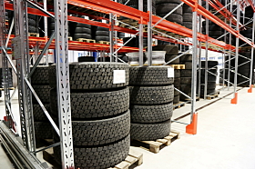 TUNGT HOTELL: Dekkhotellet på tungbildekk har kapasitet på 2500 dekk, både nye og regummierte finnes her.Fredrik Saugstad