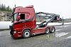 Når de store vingene skal løftes av, eller på hengeren trengs det to kraner for å få til dette. BTS fikk i april en helt ny Volvo FH 540 med en Effer 1000-kran, nettopp med tanke på vindmølle-jobbene. Med denne trenger de kun en mobilkran i tillegg. Det sparer både ett kjøretøy og en mann ute på oppdraget, spesielt under slike service-oppdrag som denne i Odal, er dette et nyttig hjelpemiddel kan Torgeir Hartveit Faugstad i BTS fortelle.