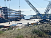 av vindmølleblader som ble losset fra skip og fraktet til lagring på