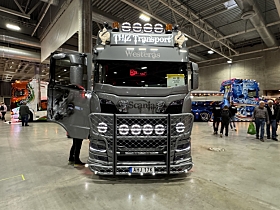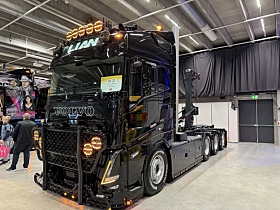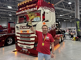 Det var en strålende glad Andreas Nitteberg som kunne holde trofeet som viste at "Kine", en Scania 580 S vant prisen for den fineste lastebilen i Scandinavian Truck Trophy. Bilen er en 2018-modell som har vært i Danmark for å få en makeover i vinter. Etter at bilen som har lakkert ramme, motor og en meget spesiell lakk har den vunnet priser over det meste av Europa.
