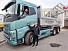 VINNERE: Sjefen Karstein Ahlin fikk både førerplassen og trofeet under den norske overrekkelsen av «Truck of the Year» hos Volvo på Furuset i Oslo. Han og salgsdirektør Bjørn Inge Haugan gjør det bra med FH Electric.