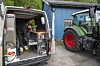 Bilen brukes som vaktbil, og den er ferdig pakket hvis de må rykkes ut til noe som har stoppet. Veldig mange av feilene som oppstår på moderne traktorer er programvarefeil. Derfor har mekanikerne fra Eik med samme PC-utstyret ut med servicebilen som de har inne på verkstedet.