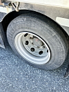 LØSNET: Dette dekket løsnet fra felgen da føreren skulle kjøre til siden for nærmere sjekk på grunn av lavt lufttrykk.