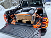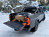 Testbilen var utstyrt med både bøyle og rulledeksel. Det gjorde at vi måtte fjerne den øverste karmen på pallen vi benytter som vekt under testen, for å få denne langt nok frem for å lukke baklemmen. Det sitter fire sikringspunkter litt opp i hvert hjørne av planet. De fremste slet vi med å rekke frem til, og måtte klatre opp på hjulet for å føle oss frem for å få sikret lasten. Dersom du ofte kjører last med pallestørrelse, ville vi derfor anbefale å sjekke om det finnes andre plan-rulledeksler som bygger mindre (30 cm), alternativt droppe dette for å få enklere lasting.