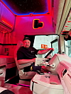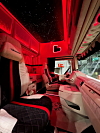 Bilen ankom Maliepaard på Hønefoss i januar, og interiøret er trukket i ekte alkantara. I taket skaper 2000 lyspunkter en stjernehimmel med animerte stjerneskudd. MP Truck Design fikk, med andre ord, leke seg.