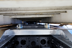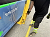 klaring på hver av sidene når han rygger innunder containerne med sideskjørtene