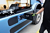 tydelig at praktiske detaljer på bilen engasjerer. Han viser også frem