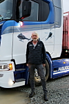Nå kjører han den eldste bilen for å trappe ned litt, men en ny Scania er bestilt som erstatter. Den kommer i februar. På spørsmål om den gamle bilen (den første i selskapet) skal byttes inn, svarer han: