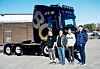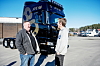 NY BIL: Morten og Rune Vik driver ST Vik og kunne overraske sjåfør Christian Holland med ny Scania Super 80 og selger Jan Ove Fossum kunne gratulere.Espen Braata/Norsk Scania