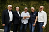 BYGGER SAMMEN: Fra venstre: Per Holm, Marius Holm (begge Ing. Hans P. Øen AS), Haakon Tronrud (Tronrud Eiendom AS), Johan Tuft (Elling Tuft Transport AS) og Thomas Bohlin (Ing. Hans P. Øen AS).Anlegg&Transport