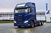 6x2-trekkvogna har den største 13-liters motoren Iveco leverer med 570 hestekrefter. Den er lakkert i en dyp blåfarge med sideskjørtene i samme farge. På lysbøylen over frontruta står det seks rektangulære fjernlys som tar igjen hovedlysene med samme form.